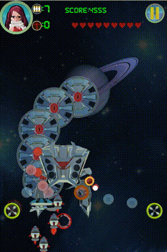 The gameplay is space action "shmup" with a twist: instead of controlling a character to dodge attacks, all enemy fire is destructible and can be intercepted by your rockets. Any enemies or attacks that reach the bottom of the screen will damage you. Think a fusion of missile command and 2hu like games. The game was specifically designed to give a fun arcade game feel that actually feels comfortable in the hands of touch screen controls, something I felt many mobile games are lacking.